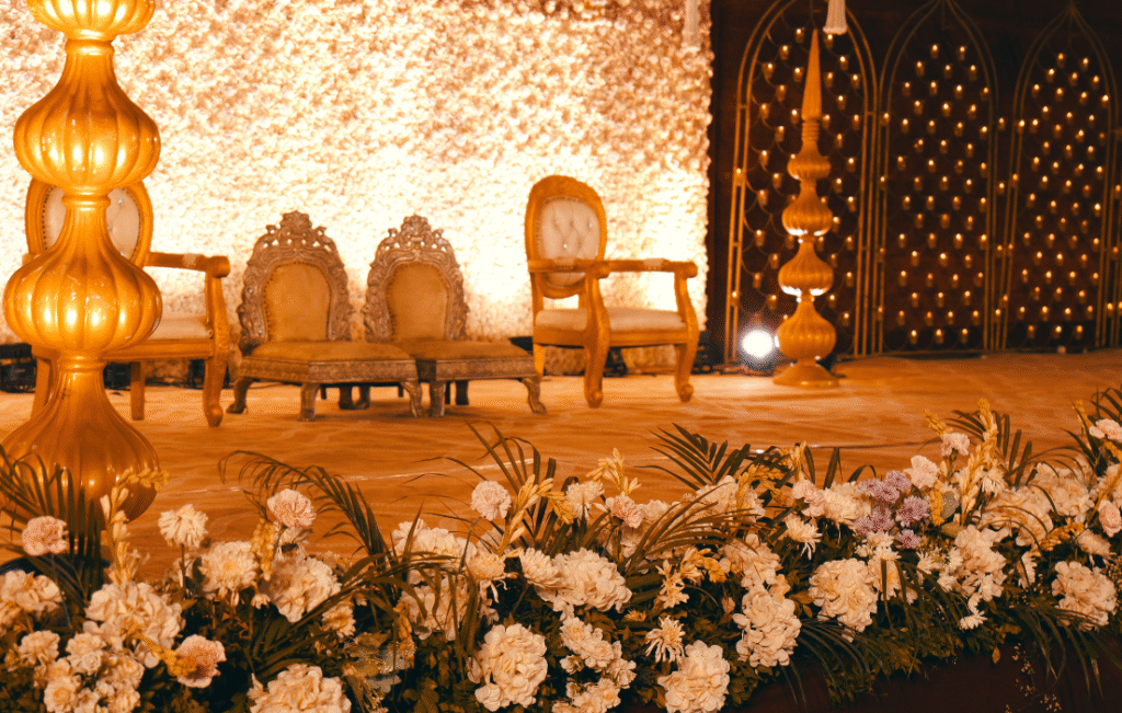 Stunning, customized stages with floral walls, LED screens, or glamorous backdrops perfect for dance performances and ceremonies.